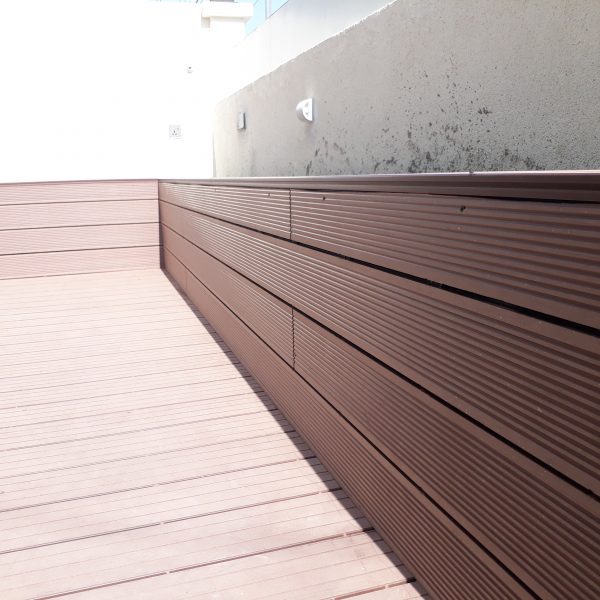 دراین پروژه از چوب پلاست جهت کفسازی استفاده شده است . پروفیل های چوب پلاست به دلیل ویژگی های منحصر به فرد خود باعث شده است که طراحان تمایل به اجرای کف سازی چوبی داشته باشند همچنین به دلیل مقاومت، عدم نیاز به رنگ و روغن و از همه مهم تر قیمت بسیار مناسب چوب پلاست نسبت به چوب طبیعی از چوب پلاست در پروژه های خود استفاده نمایند.